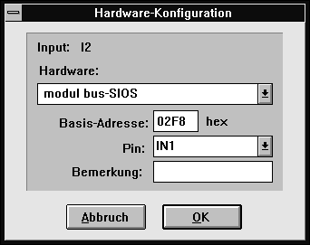 Jedem Ein- und Ausgang muß ein Anschluß eines Interfaces zugeordnet werden. Dabei ist das Interface, die verwendete Schnittstellenadresse und der gewünschte Anschluß einzugeben. Die Abbildung zeigt den entsprechenden Dialog. Nach diesen Vorbereitungen kann die Simulation gestartet werden. Mit angeschlossenem Interface erkennt man sofort, daß die LED am Ausgang 0 leuchtet. Verbindet man nun die Eingänge 0 und 1 mit +5V, dann schaltet sich der Ausgang aus. Man könnte nun z.B. zwei Mikroschalter und ein Lämpchen aus dem SIOS-Experimentierset anschließen, um den Versuch noch realistischer zu gestalten. Die Lampe ist im Ruhezustand an und kann nur ausgeschaltet werden, indem man beide Mikroschalter betätigt. Das NAND-Gatter ist nun mehr als nur ein Grundbaustein der Computertechnik. Es bildet hier vielmehr eine komplette logische Steuerung mit praktischem Nutzwert. Man kann es z.B. als Sicherheitsschalter einsetzten, bei dem über zwei Schaltkontakte eine Sperre aufgehoben wird.